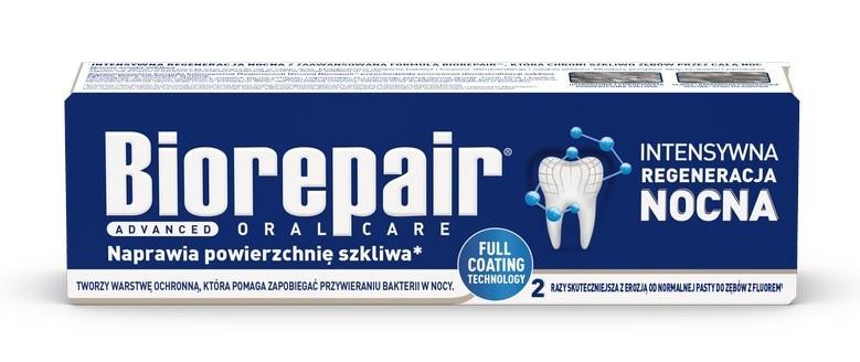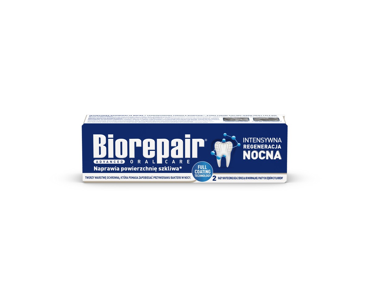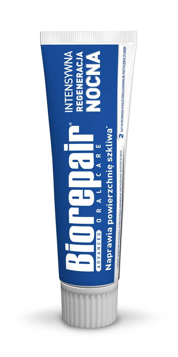 W nocy nasze zęby narażone są na atak kwasów powstałych po posiłku i nawet, jeżeli używasz do czyszczenia zwykłej pasty do zębów, i tak powstają niewidoczne szczeliny, w których gromadzi się kamień, bakterie i pigmenty, powodujące próchnicę, pogorszenie się stanu zębów i utratę ich blasku. Pasta do zębów Biorepair® Night zawiera bioaktywne mikrocząsteczki, podobne swym składem i strukturą do tych, które znajdują się w zębach (mikrocząsteczki MICROREPAIR®). Łączą się one ze strukturą szkliwa i zębiny, przenikając do najmniejszych szczelin zęba i naprawiając w ten sposób jego powierzchnię.