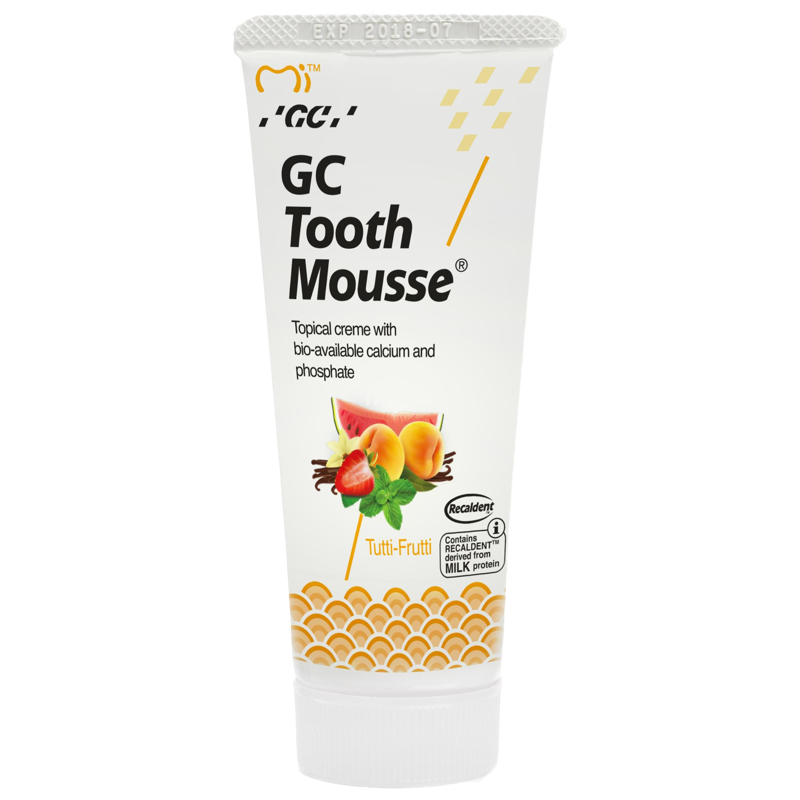 CG Tooth Mousse jest preparatem na bazie wody zawierający kompleks Recaldenªt CPP-ACP(fosfopetydy kazeiny – amorficzny fosforan wapnia). Produkt nie zawiera fluoru.