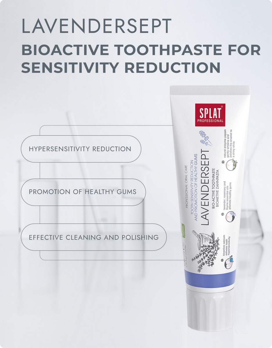 Ponad 80% obywateli planety cierpi na choroby dziąseł. LAVANDASEPT SPLAT przeznaczona jest do kompleksowej pielęgnacji jamy ustnej i skutecznego oddziaływania na bakterie *, wywołujące zapalenie jamy ustnej i dziąseł (powszechne choroby dziąseł).