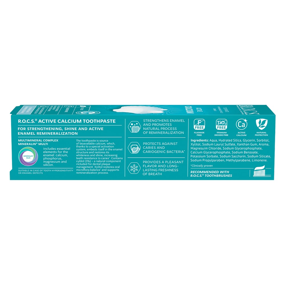 Dzięki R.O.C.S. zdrowe, mocne zęby nie są tylko celem – są rzeczywistością. Zaufaj R.O.C.S. Active Calcium i pozwól, aby Twój uśmiech lśnił jaśniej niż kiedykolwiek!