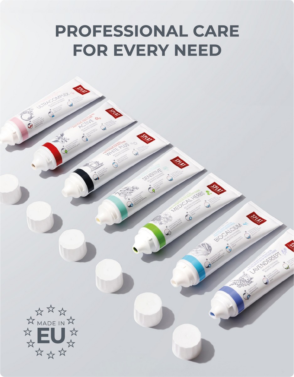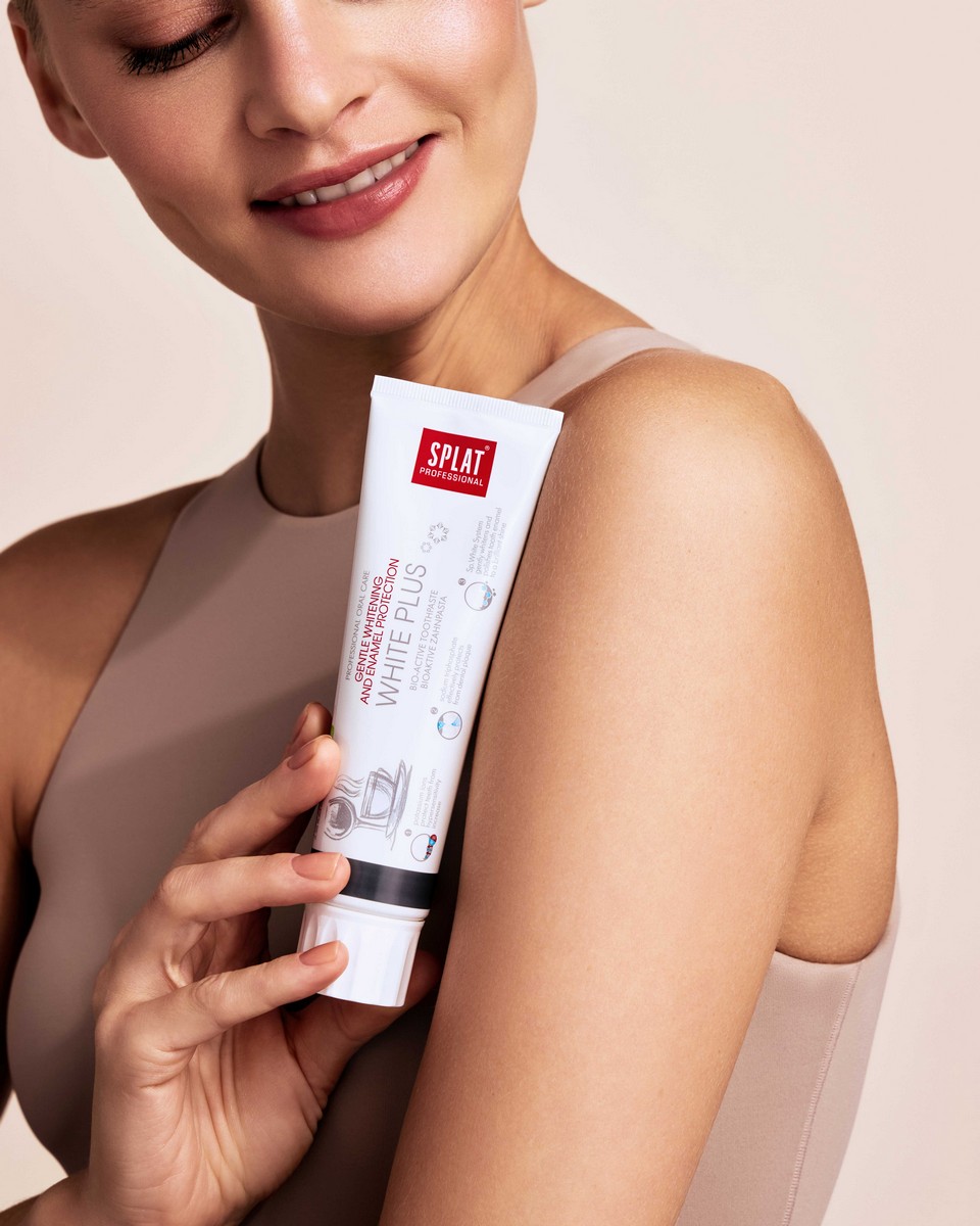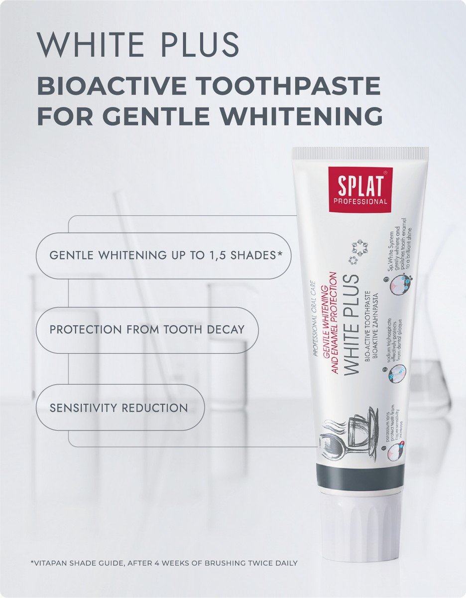 Innowacyjny system Sp. White system® bezpiecznie wybiela i poleruje szkliwo do połysku.