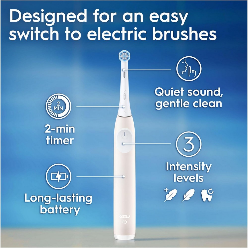 Szczoteczka elektryczna iO 2 łączy delikatne mikrowibracje z unikalną okrągłą końcówką szczoteczki zaprojektowaną we współpracy z dentystami, zapewniając uczucie profesjonalnego czyszczenia każdego dnia.