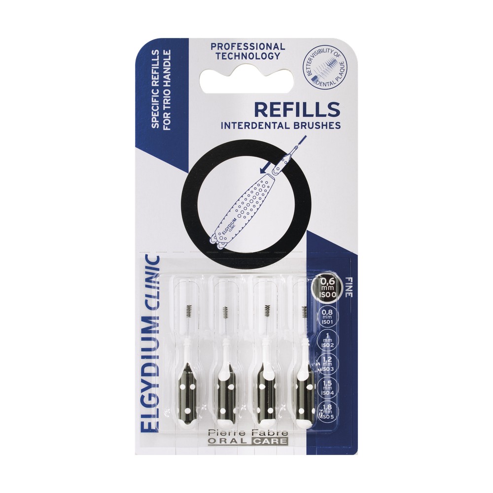 Zaprojektowane z myślą o skutecznym czyszczeniu przestrzeni międzyzębowych, wkłady do szczoteczek międzyzębowych ELGYDIUM Clinic uzupełniają codzienną higienę jamy ustnej i są szczególnie polecane osobom z implantami, aparatami ortodontycznymi lub odsłoniętymi szyjkami zębów. Korzystanie z nich zmniejsza gromadzenie się płytki nazębnej, która jest odpowiedzialna za próchnicę i choroby dziąseł. Czarne włókna szczoteczki są cieńsze, co ułatwia ich używanie w przestrzeniach międzyzębowych   i pozwala zobaczyć, czy osad płytki nazębnej został usunięty. Białe włókna szczoteczki są grubsze i pozwalają  wykrywać sporadyczne krwawienie.