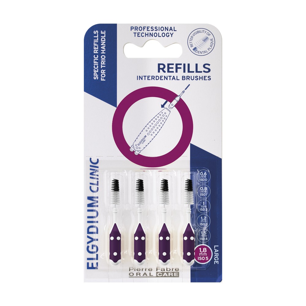 Wkłady do szczoteczek międzyzębowych ELGYDIUM Clinic są dostępne w 6 rozmiarach, od wąskich (ISO 0) do szerokich (ISO 5) w różnych kolorach. Wkłady do szczoteczek międzyzębowych.