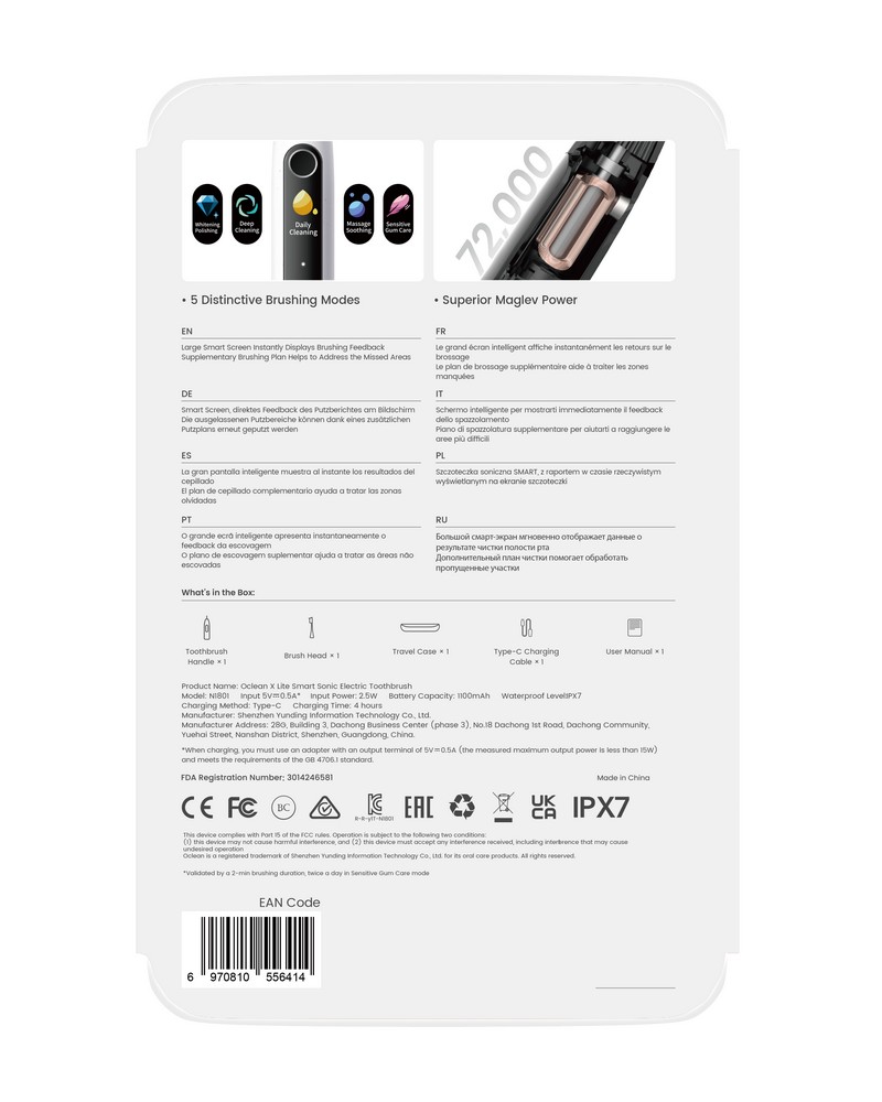 Oclean X Lite to zaawansowana szczoteczka soniczna, która łączy nowoczesną technologię z eleganckim designem, zapewniając kompleksową pielęgnację jamy ustnej.