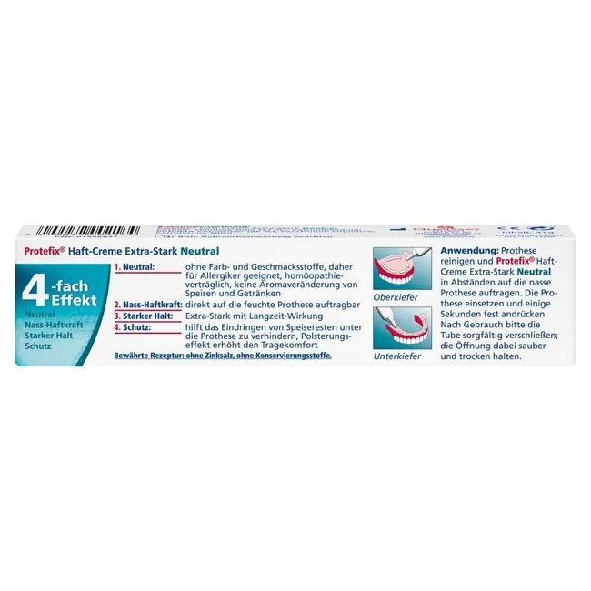 Protefix® Krem mocujący NEUTRAL jest wolny od barwników i substancji smakowych — jest całkowicie bezzapachowy i neutralny w smaku. Dzięki temu nie wpływa na smak potraw ani napojów, a jednocześnie zmniejsza ryzyko reakcji alergicznych, które mogą wystąpić przy stosowaniu dodatków zapachowych i smakowych.