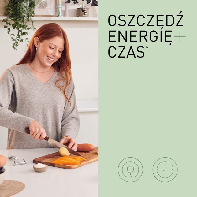 Miej oko na gotowanie bez otwierania kosza. I czekaj z niecierpliwością na swoje ulubione jedzenie. Poręczne okienko wykonane z hartowanego szkła i oświetlenie LED pomagają również oszczędzać energię – nie trzeba stale otwierać i zamykać kosza, co powoduje ucieczkę ciepła, a oświetlenie LED można łatwo wyłączyć.