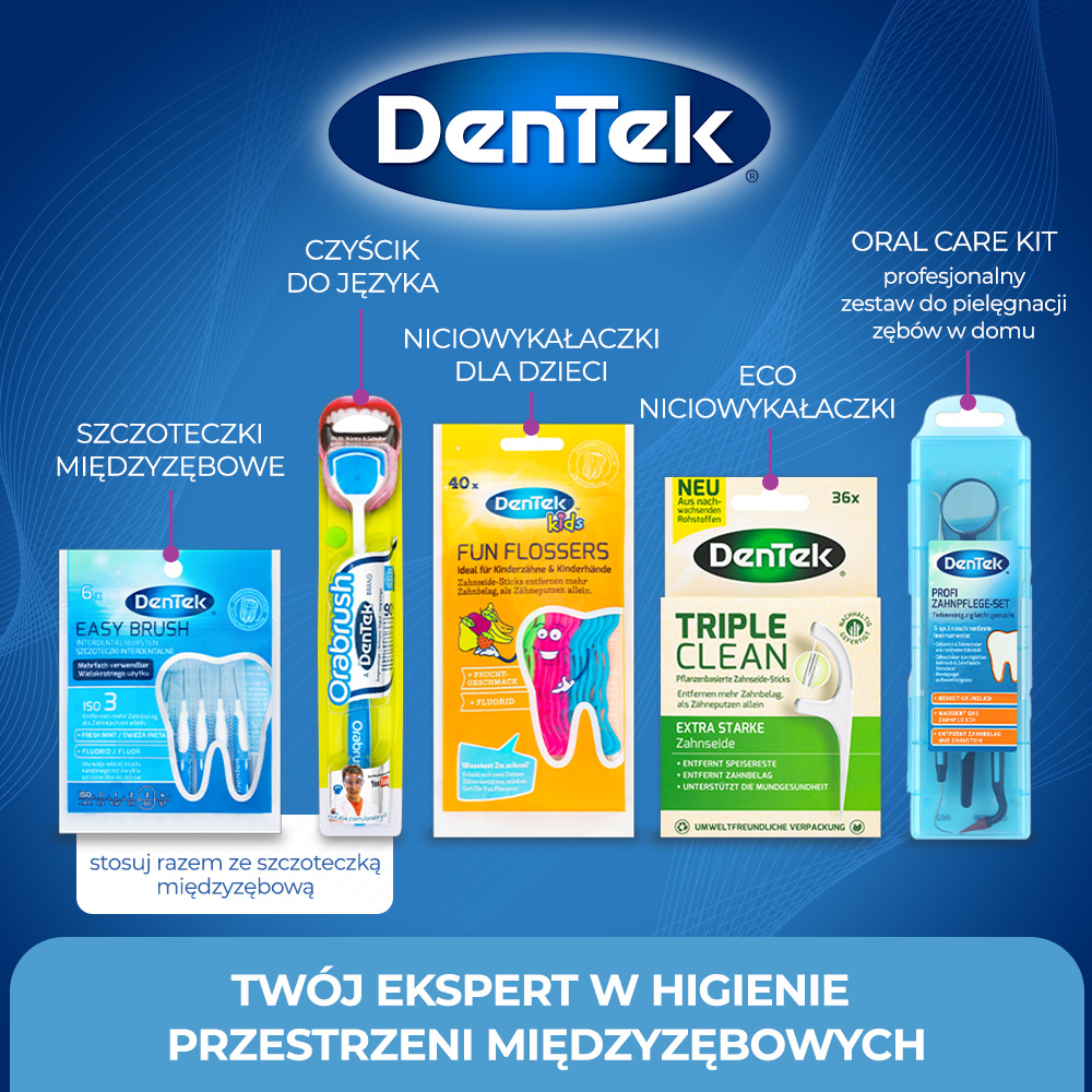 Czy wiesz, że tradycyjna szczoteczka omija aż 40% powierzchni Twoich zębów? Szczoteczki interdentalne DenTek Easy Brush to zaawansowane narzędzie, które dociera tam, gdzie zawodzi nitka i zwykłe mycie. Dzięki stożkowatej konstrukcji i miętowej świeżości, dbanie o higienę przestrzeni międzyzębowych, aparatów czy implantów staje się proste, komfortowe i wyjątkowo skuteczne w walce z płytką nazębną.